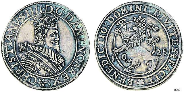 Chodzi o ¼ Speciedalera wybity w Christianii, czyli w dzisiejszym Oslo, za panowania króla Christiana IV. Dla polskiego numizmatyka to moneta egzotyczna, rzadko spotykana i znacznie mniej znana niż nasz gdański ort. A jednocześnie – należy dokładnie do tej samej klasy wagowej i pieniężnej: to po prostu ćwierć talara.
